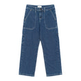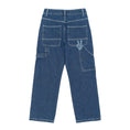 These jeans from THE NEW combine a classic denim look with fun and practical details. They feature regular and back pockets, with a playful "peace" sign print on the back pocket, adding a cool and unique touch. The jeans also include side pockets and a practical hammer loop on the side for a classic utility vibe. An elastic waistband and belt loops make them adjustable and comfortable. Perfect for both everyday wear and play. Style them with a t-shirt or sweatshirt for a relaxed and cool outfit.