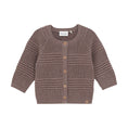 A stylish and timeless cardigan from Minymo. The cardigan features a beautiful textured knit with horizontal rib details and raglan sleeves, creating a modern look. The wooden-look buttons add a natural touch. The cardigan is finely knitted from a soft cotton blend, making it comfortable against the skin. Perfect for both everyday wear and special occasions.