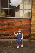 This denim dress from THE NEW siblings is both fun and practical. The dress features a classic A-line fit with two large front pockets, decorated with a smiling face and the text "Love More." It has button closures on the shoulders, making it easy to put on and take off. The durable denim quality makes the dress ideal for play and everyday wear, while also being suitable for festive occasions. Perfect to pair with a T-shirt or a long-sleeved top underneath.
