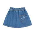 This denim skirt from THE NEW siblings is both cute and comfortable. The skirt features an elastic waistband, ensuring a comfortable fit and making it easy to put on and take off. It is designed with a small front pocket decorated with a smiling face, adding a fun and playful touch. The durable denim quality makes it suitable for both play and everyday wear. Perfect to style with a T-shirt or sweatshirt for a casual look.