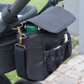 | The Benny stroller organizer is made to make your walks, short trips and shopping excursions easier. Store everything you need in an easily accessible place on your stroller. The stroller organizer comes with Velcro straps so you can easily attach the bag to the stroller, but also has a shoulder strap so you can take the bag with you. It comes with two insulated cup holders so you can keep your drinks hot or cold on the go. It has a large storage compartment in the middle and comes with three smaller pockets for your phone, keys and toys. Made from 100% recycled polyester that is easy to wipe clean and has no PFA coating. |