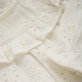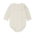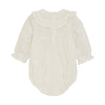 Beautiful romper from EN FANT, crafted in a lovely cotton quality. The romper features many delicate details, such as a ruffled collar and fabric gathers at the sleeves, creating a charming girly look. Elastic at the leg openings ensures a comfortable fit. Closes with press studs at the neck and between the legs.