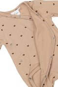 Long-sleeved wrap jumpsuit in a beautiful, color with small, delicate heart prints. The jumpsuit features a practical wrap design with snap buttons along the front and inside the legs, making it easy to put on and take off. The soft cotton fabric provides maximum comfort and freedom of movement, perfect for both everyday wear and relaxed moments. This jumpsuit is available in 2 colors.