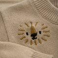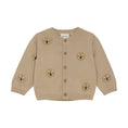 Knitted cardigan from Minymo featuring embroidered lion heads as a motif, adding a unique and detailed touch. Made from soft and comfortable fabric for all-day comfort. The cardigan has a round neckline, front button closure, and ribbed edges at the sleeves and hem for a great fit. Perfect as a stylish layer on chilly days or for special occasions. Certified acc. to GOTS - organic CERES-0366