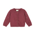 Beautiful knitted cardigan from EN FANT. The cardigan features long sleeves with a lovely floral pattern and closes with buttons at the front. Ribbed edges at all openings complete the design. Certified acc. to GOTS - organic CERES-0366