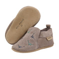 Beautiful leather slippers from EN FANT featuring an embroidered pattern. Elastic around the foot and a strap on the heel to make them easy to get out of and into. Good and comfortable fit. They are made of suede and have EN FANT logo on the side. The bottom in suede provides a good foothold. A maximum of 1 cm is recommended in growing room.