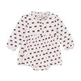 Beautiful long-sleeved dress with a round neckline and elastic details at the sleeves. The dress features delicate gathered details and a button closure at the back. Perfect for both everyday wear and special occasions. Certified acc. to GOTS - organic CERES-0366