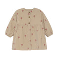 Long-sleeve corduroy dress with front buttons and elastic at the wrists, offering a classic and comfortable fit. Certified acc. to GOTS - organic CERES-0366