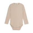 Sweet body in a beautiful pointelle. The body is made from a soft cotton quality that feels comfortable against the skin. It features long sleeves and closes with press studs between the legs.