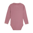 Cute body in pointelle with an elegant checkered pattern. The body is made from a soft cotton quality that feels comfortable against the skin. It features long sleeves and closes with press studs between the legs.