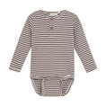 Soft and comfortable long-sleeved bodysuit in a stretchy quality that ensures great comfort and freedom of movement. The bodysuit features snap buttons at the bottom for easy dressing and buttons at the neckline for added detail. Perfect for everyday wear.