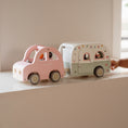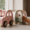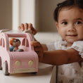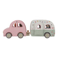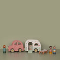 Pack your dreams and let’s hit the road! Discover the adventurous world with the cute pink car and caravan. Set up camp wherever you want and enjoy the freedom of a moving holiday home. Whether it's the living room, the playroom, or the kitchen, take out the beach chair, unpack, and let the 3 peg dolls enjoy the surroundings. The smooth-rolling wheels allow your little one to effortlessly ride across the floor, looking for new sites for a caravan sleepover. The door and roof of the caravan can open and the figures are compatible with the dollhouse and other playsets such as the airplane and school bus. Let your little one enjoy the magic of travel and discovery with this versatile wooden toy set.