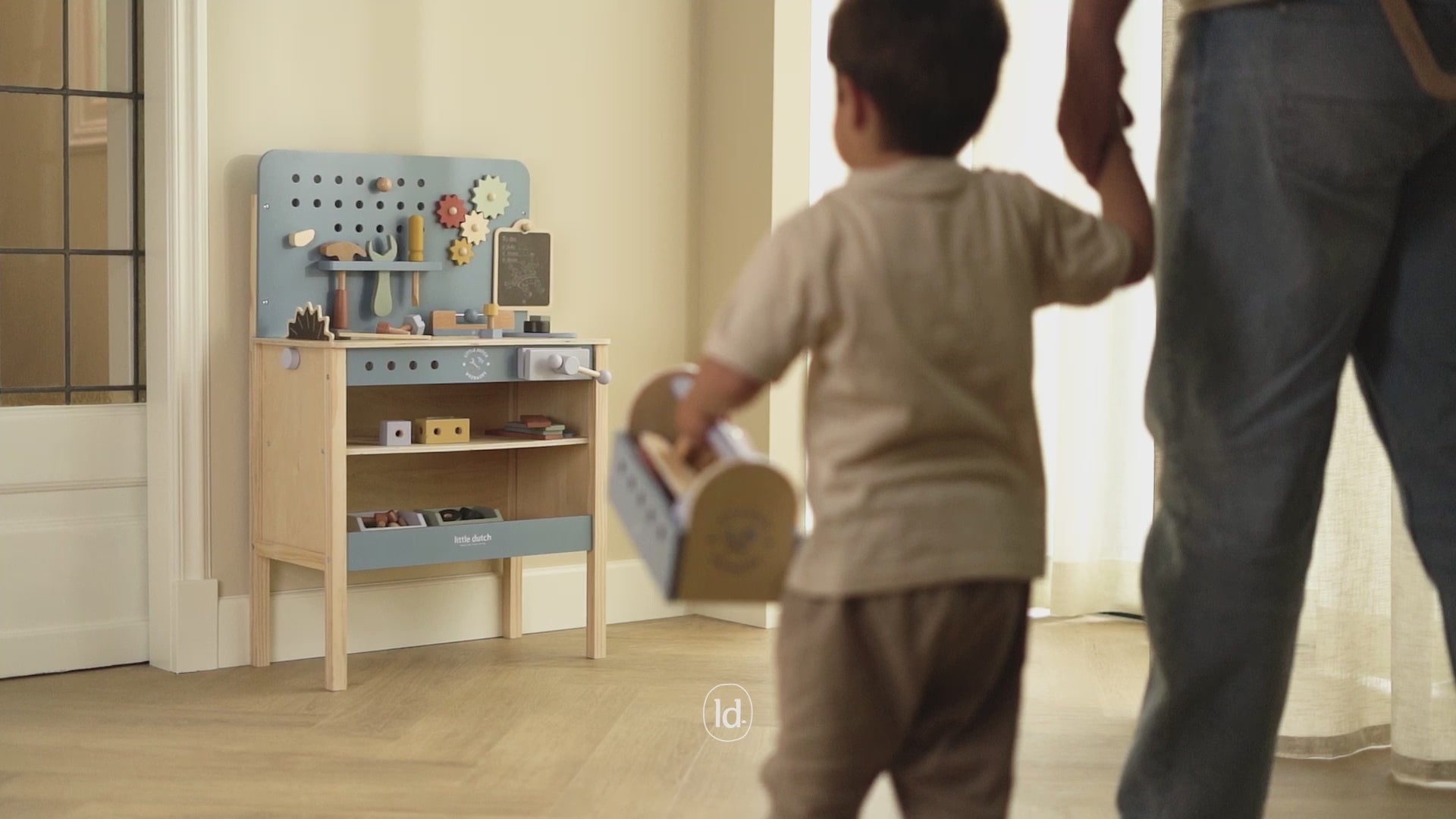 For little builders, this wooden tool belt is a real must-have! The adjustable belt always fits comfortably and is filled with five different tools, such as a hammer, screwdriver, and wrench. Ideal for role-playing and developing motor skills. Combine with the workbench and toolbox for a complete workspace. Ready to build and repair?