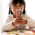 Let your child marvel with this magical coloring book. With soft illustrations and cheerful colors, it invites creative fun. Includes three crayons, twenty pre-printed and ten white pages for endless coloring pleasure. Made of sturdy paper, perfect for little hands.