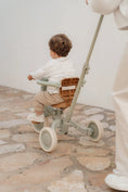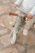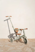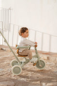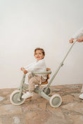 Hop, time to go out! With this beautiful soft green with brown detailed 4-in-1 balance bike, the first (bicycle) adventures are made like this. Ideal to get to know cycling in a playful way. Is your little one not ready for walking or cycling? No problem, with the push bar you help a hand. Safety for everything, thanks to the belt and the safety ring, which you can easily remove if they are no longer needed. From tricycle to balance bike in an instant - and the pedals? You can easily store it under the saddle!