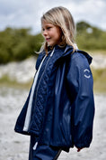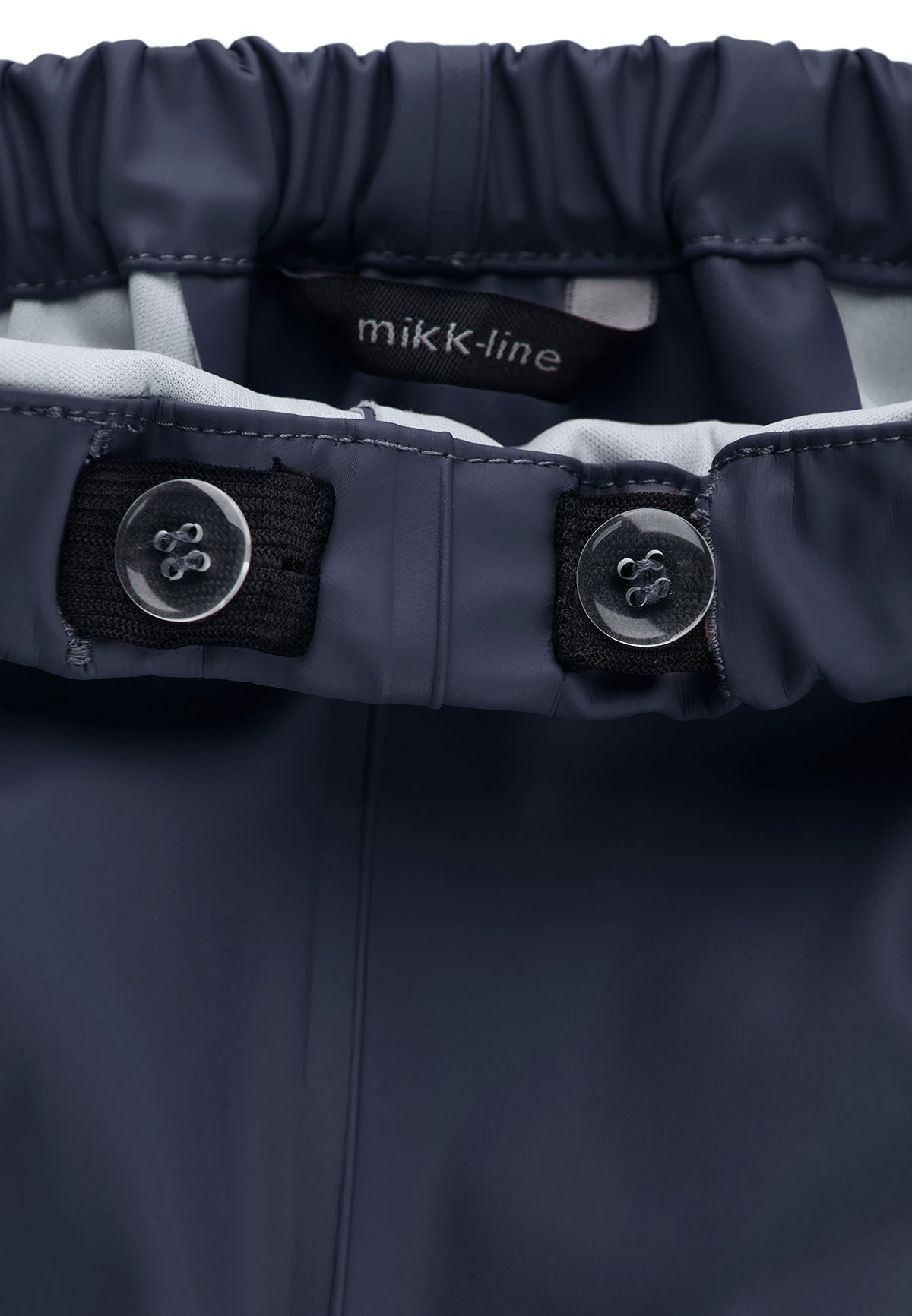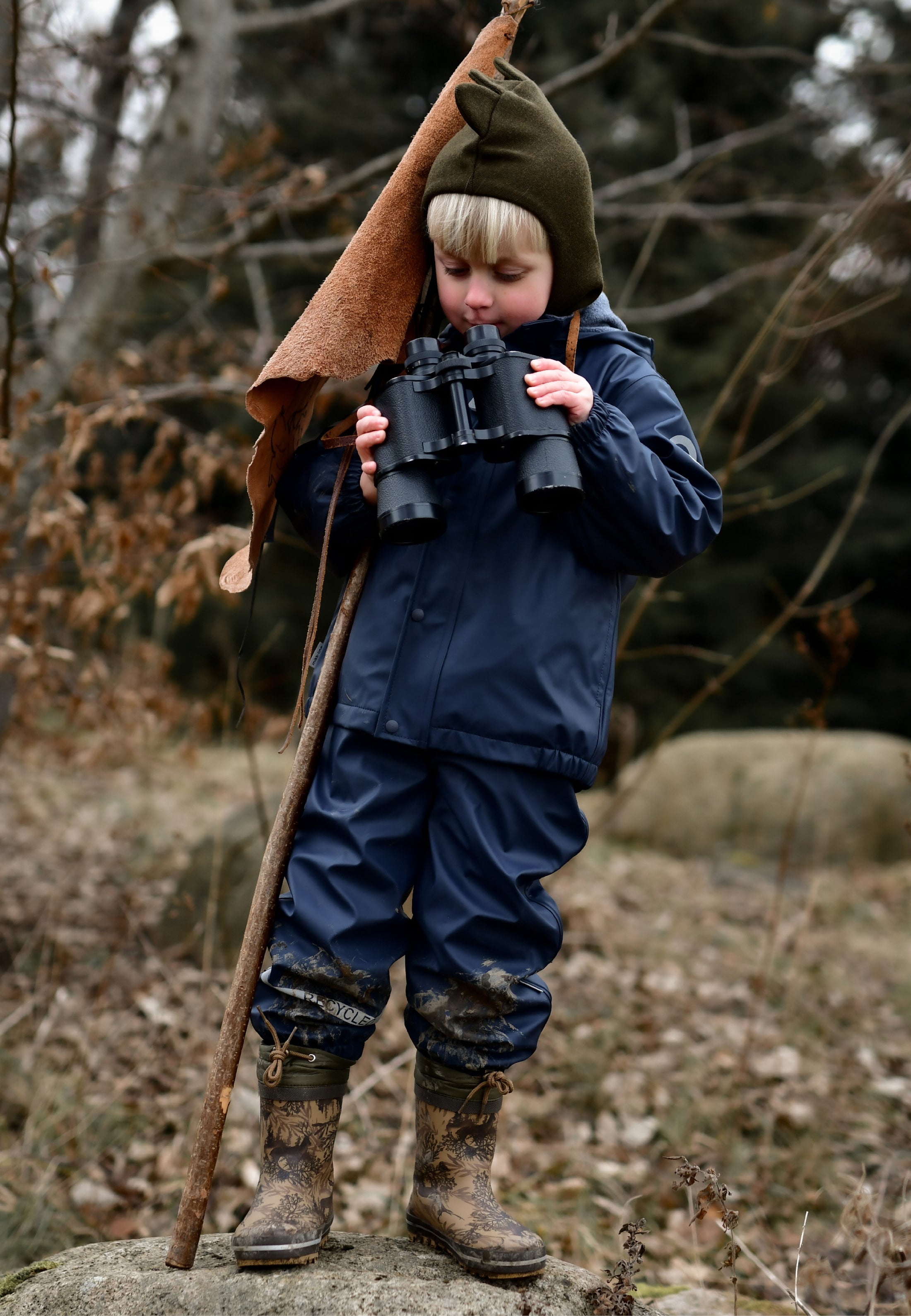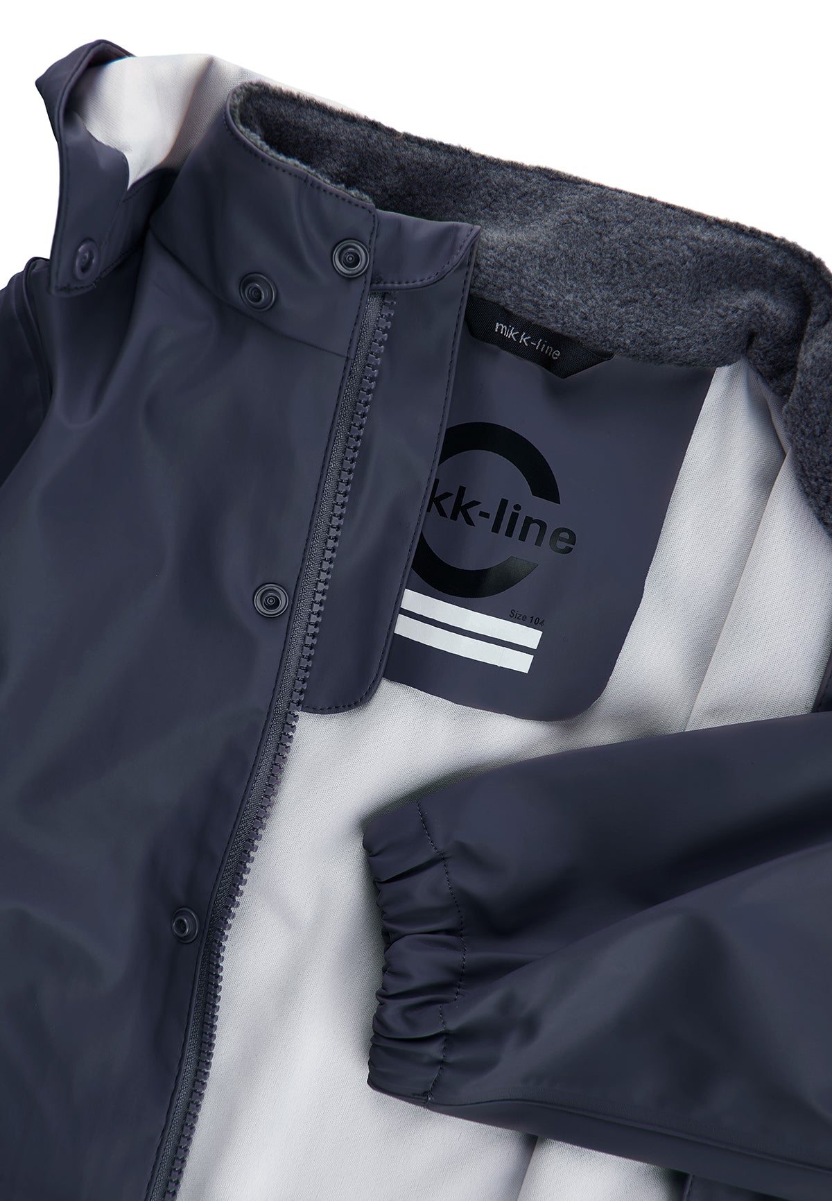 Þetta regnfatasett er úr vatnsheldu efni með 58% endurunnu pólýester og það er hannað fyrir börn til að skemmta sér í rigningunni, hoppa polla, renna sér niður blauta rennibrautina, leika sér í blautum sandkassanum o.s.frv.