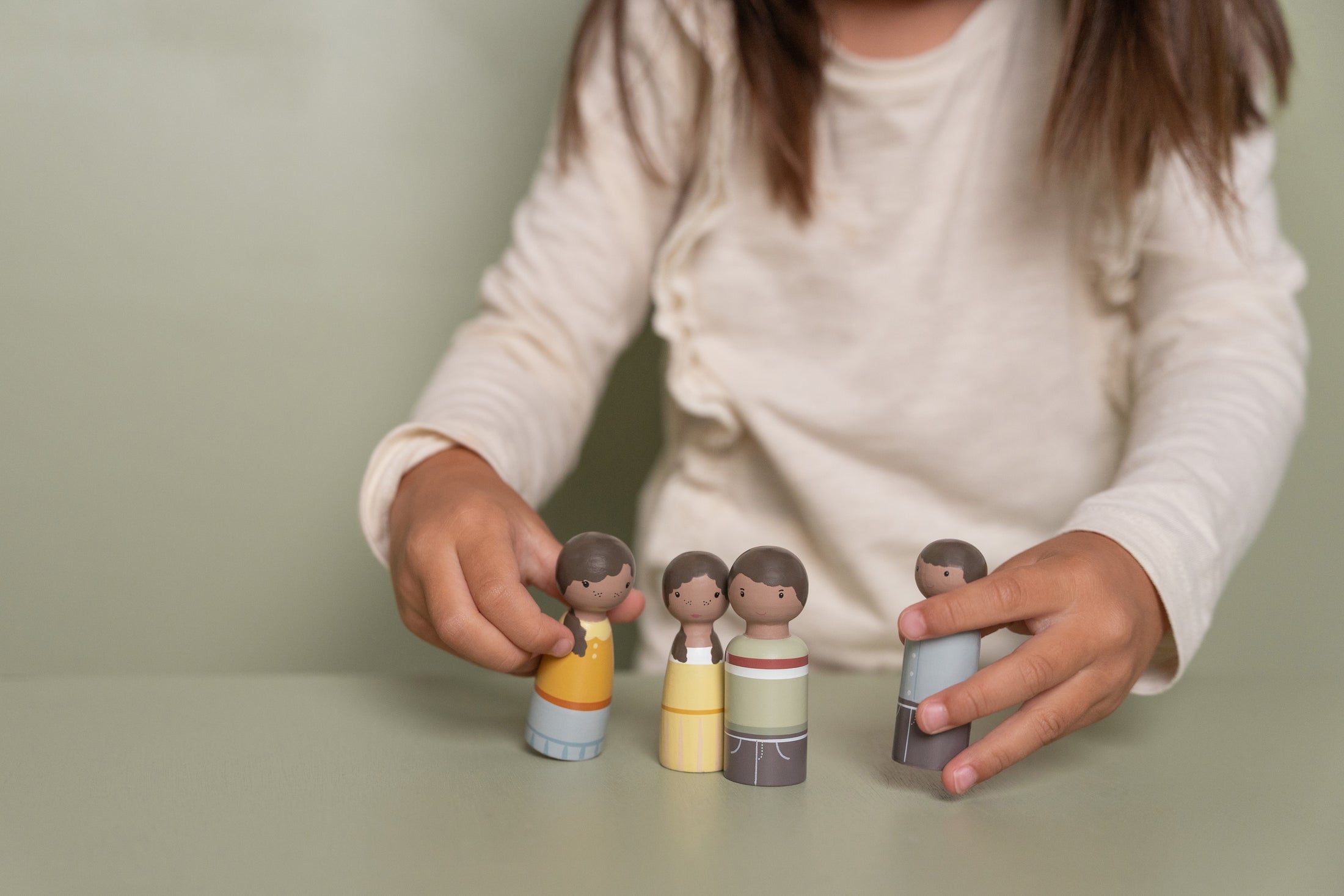 This family is a set of wooden peg dolls, consisting of a father, mother, son, and daughter. This expansion set is a great addition to Little Dutch's new dollhouse. A guarantee for hours of fun.
