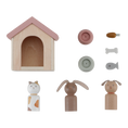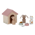 Bring the Little Dutch dollhouse to life with the pet expansion set! Welcome a well-behaved dog, a cute bunny, and a lovely cat into your doll family. Give them a cozy bed, food bowls, and toys to play with. Create unforgettable adventures and cuddle moments with these enchanting pets and their matching accessories. The dollhouse becomes a real animal kingdom!