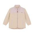 Nice jacket from Minymo. The jacket is made of 100% polyester and has a nice look in two colours. The jacket has a slightly higher collar, which both gives a nice look and keeps the child warm. Front pockets. The jacket closes with a zipper.
