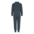 Cool and solid colored thermal set. The thermal set has ribbing at the neck and wrists that makes it comfortable to wear and keeps the wind out. The thermal set is practical as transistion clothing and with many good qualities like water and dirt repellent nylon on the knee, good breathability and elastic at the feet and waist.