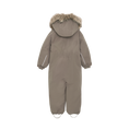The snowsuit is closed with a quality zipper at the front and on the outside pockets at the front. Chin protectors make sure that the zipper feels soft under the chin. The snowsuit has a detachable hood. Adjustable rubber boot straps that can be put under the boot to hold it in place. Reflective details on the sleeves and down the side of the snowsuit. EN FANT logo on the sleeve. The sleeves have practical snowskirts with wide ribbing with a hole for the thumb. The sleeve edges can be tightened with velcro. There is name tag inside, pocket and soft teddy lining. The snowsuit is made of recycled material.