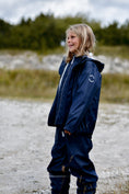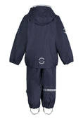 Þetta regnfatasett er úr vatnsheldu efni með 58% endurunnu pólýester og það er hannað fyrir börn til að skemmta sér í rigningunni, hoppa polla, renna sér niður blauta rennibrautina, leika sér í blautum sandkassanum o.s.frv.