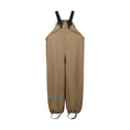 The rain pants in size 70-100 have adjustable elastic braces and press buttons in each side.