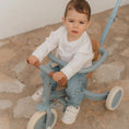 Hop, time to go out! With this beautiful soft green with brown detailed 4-in-1 balance bike, the first (bicycle) adventures are made like this. Ideal to get to know cycling in a playful way. Is your little one not ready for walking or cycling? No problem, with the push bar you help a hand. Safety for everything, thanks to the belt and the safety ring, which you can easily remove if they are no longer needed. From tricycle to balance bike in an instant - and the pedals? You can easily store it under the saddle!