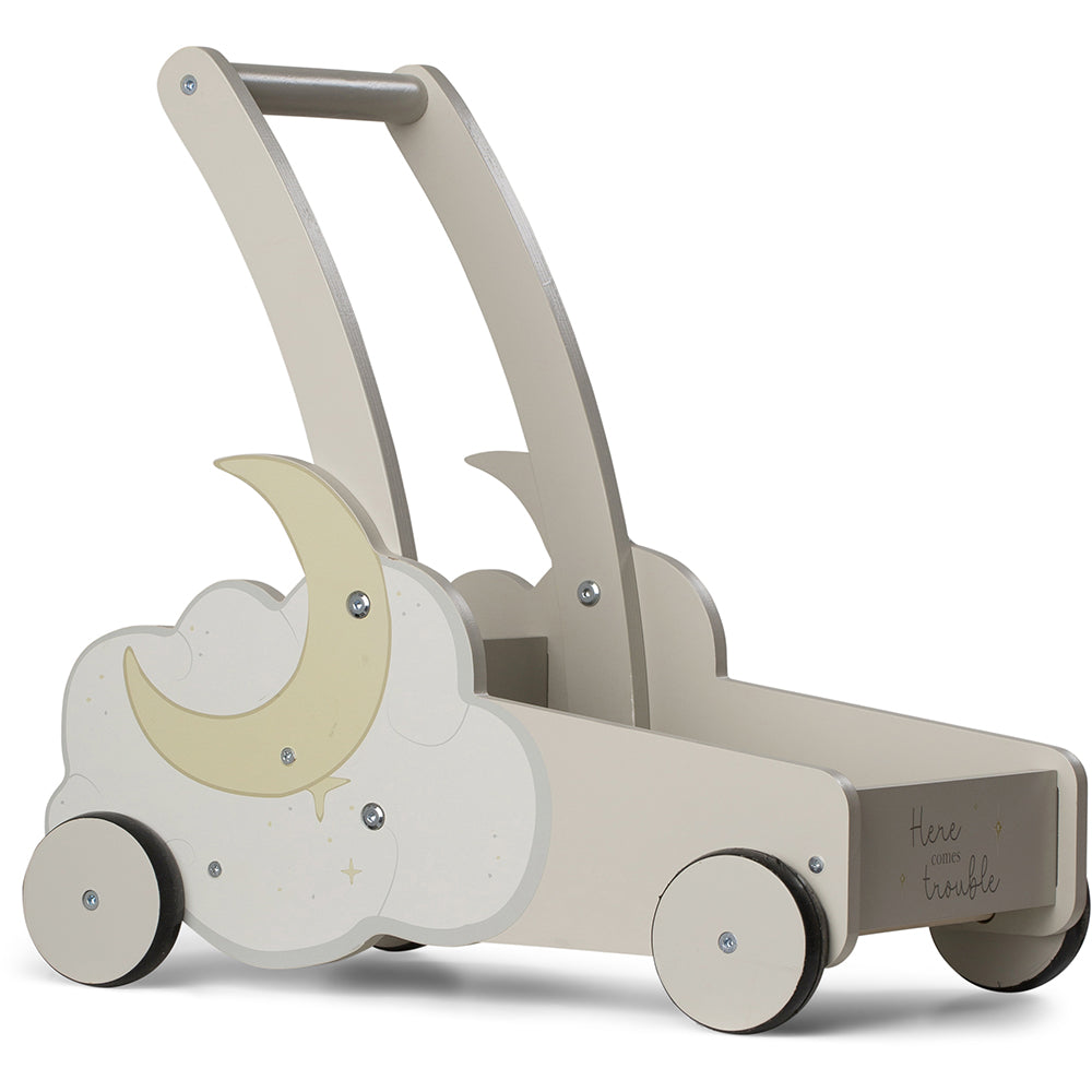 The stroller has a fine moon print on each side and can make play more imaginative.