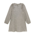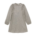 Long-sleeved dress with ruffles on the shoulders. Made in a shimmering fabric and finished with elastic at the sleeve ends.