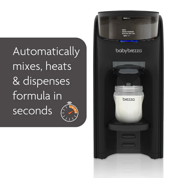 Baby Brezza Formula Advanced er byltingarkennd vél sem útbýr mjólkurpela með sem minnstri fyrirhöfn. Vélin hitar vatn og blandar við rétt magn af formúludufti í hvert skipti.