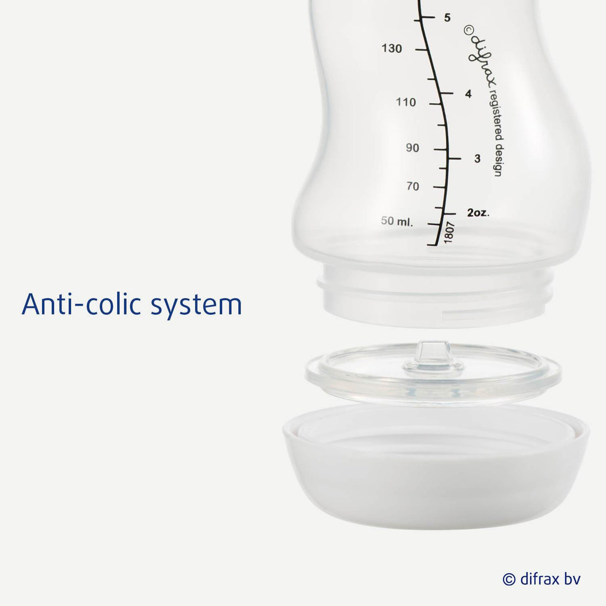 • Pelinn sem hefur verið í uppáhaldi hjá börnum og foreldrum vegna hins einstaka „anti-colic“ loks og S-lögunar pelans . – Þessir eiginleikar pelans tryggja stöðugt og jafnt flæði vökvans. – Eiginleikarnir koma í veg fyrir tómarúmssog hjá barninu úr pelanum, sem aftur tryggir jafnt og stöðugt flæði vökvans og gerir barninu kleift að drekka án þess að innbyrgða umfram óþarfa loft. – Þannig draga hinir sérstöku eiginleikar úr líkunum á óþarfa magakrampa, ristilkrampa, hægðatregðu, ropa, bakflæði og uppköst af völdum umfram lofts.
