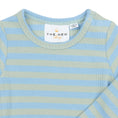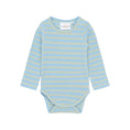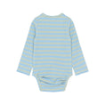 Þessi unisex síðerma samfella fyrir ungabörn er með láréttum röndum og fíngerða riffluðu áferð. Hún er úr 95% bómull og 5% elastani sem veitir aukinn teygjanleika fyrir hreyfingu. Kringlótt hálsmál er með tveimur smellum á annarri öxlinni sem auðveldar klæðningu. Þrjár smellur á klofi gera bleyjuskipti fljótleg. Fjölhæft snið sem hentar vel sem sjálfstæð flík eða undir galla eða prjónafatnað.